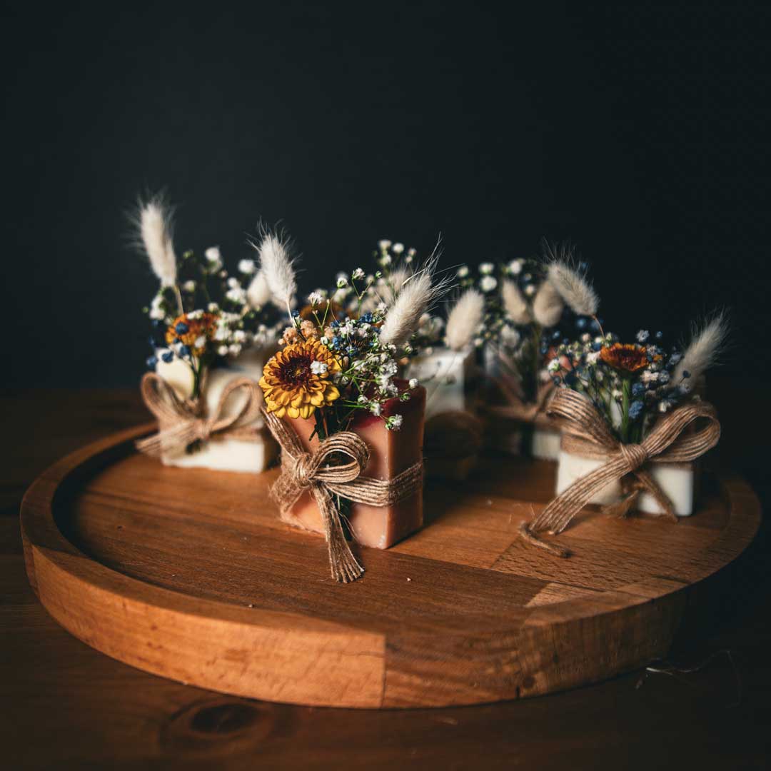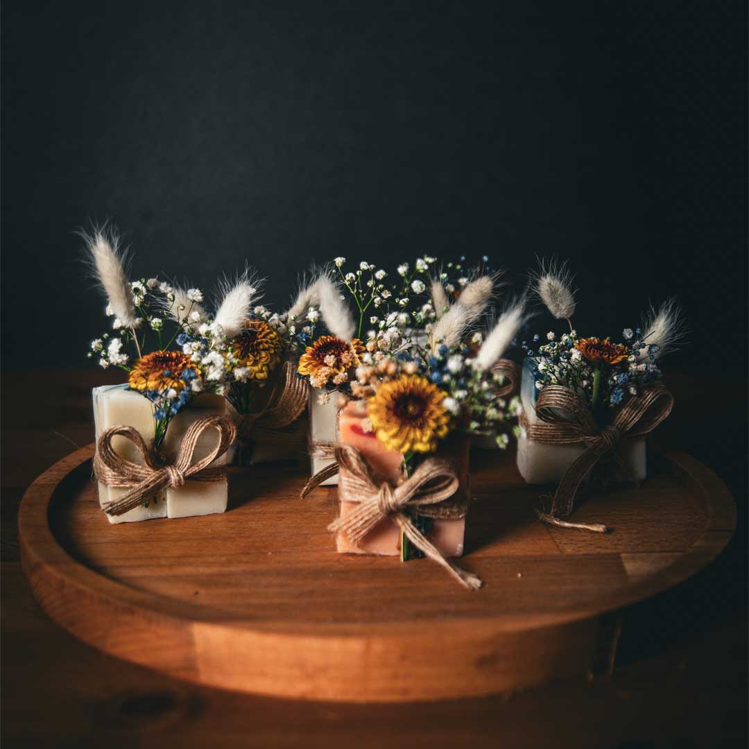 💐 Her Ember sabunu, doğal çiçekler ve süslemelerle özenle tamamlanır. Sunumunuzu tül kese, kumaş kese, karton kutu ya da ahşap kutu ile kişiselleştirebilirsiniz. (Sunum opsiyoneldir.)