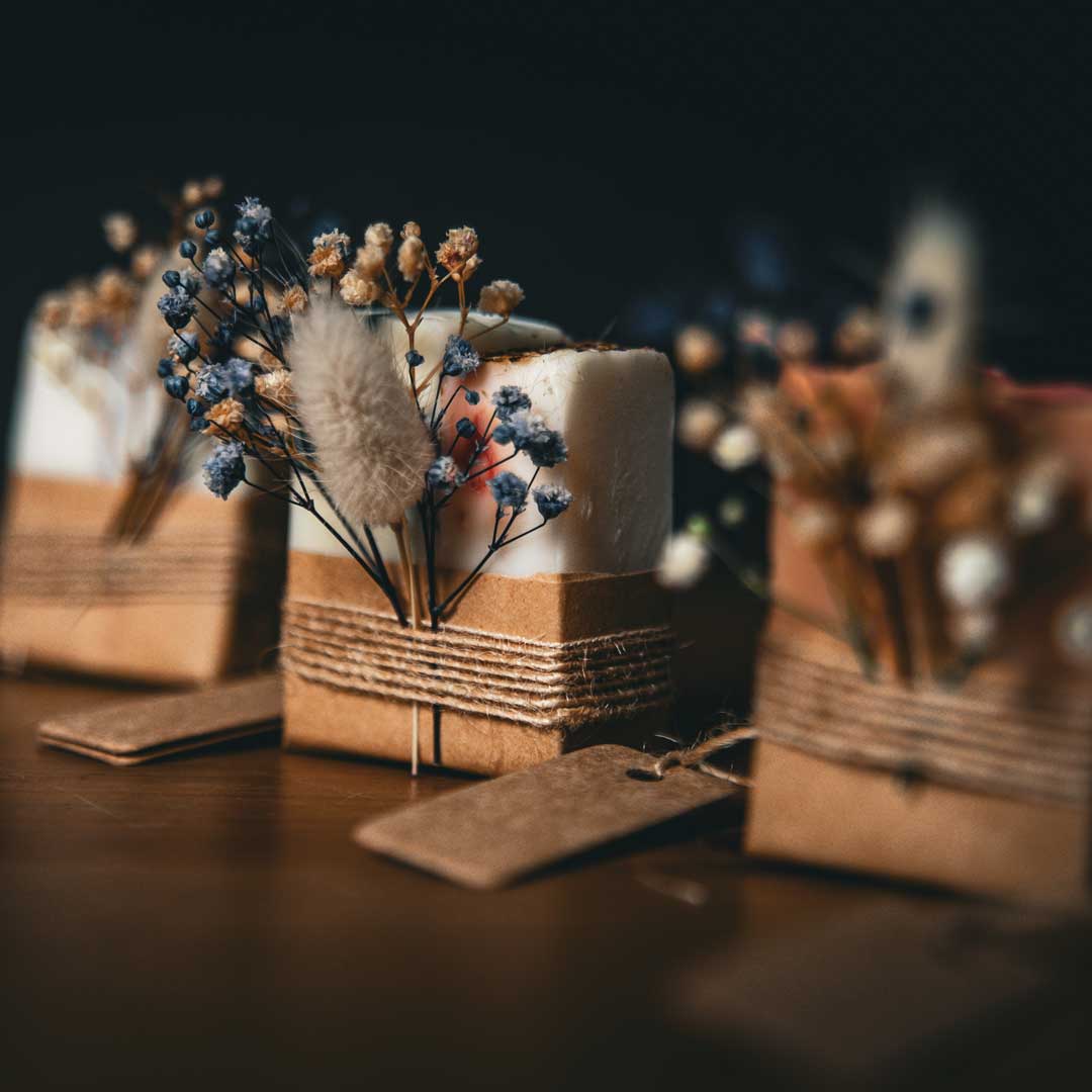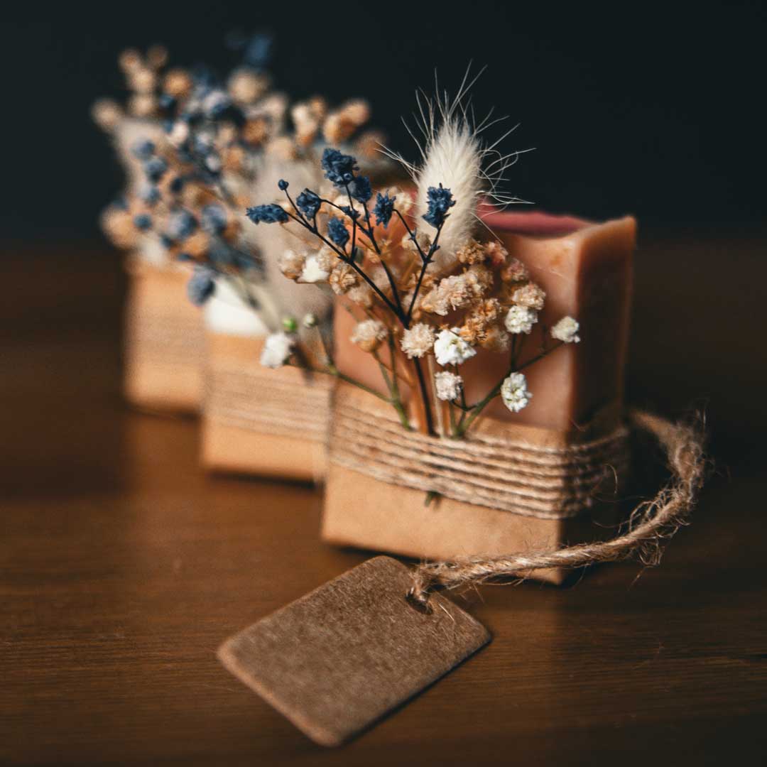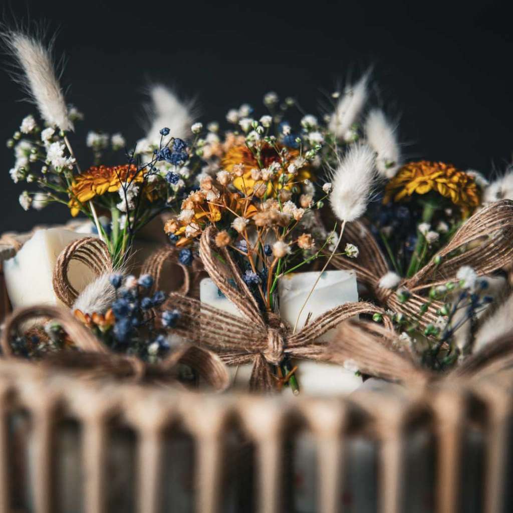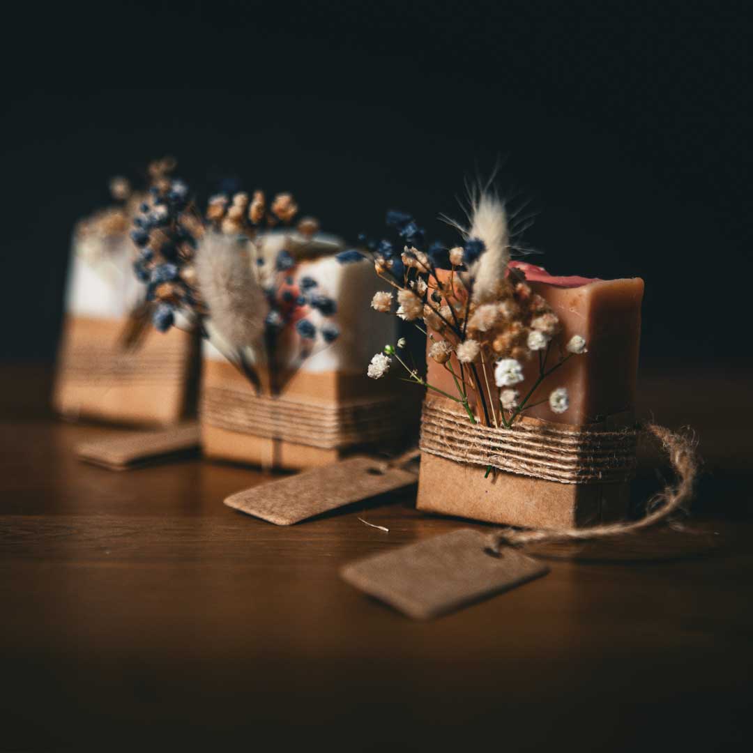 🌸 Üzerine eklenen kuru ya da canlı çiçekler, sabunun doğallığını görsel estetikle buluşturuyor. (Canlı çiçek seçeneğinde ek ücret uygulanabilir.)